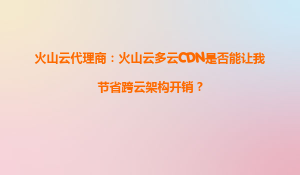 2025-09-29火山云代理商:我能否通過火山云多云CDN簡化架構(gòu)設(shè)計? 一、多云CDN如何助力企業(yè)架構(gòu)簡化 在數(shù)字化浪潮中,企業(yè)業(yè)務(wù)常面臨全球用戶訪問延遲、流量高峰不穩(wěn)定、傳統(tǒng)CDN供應(yīng)商單一等問題。...