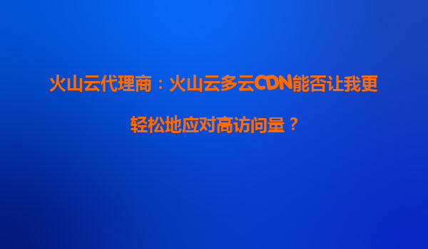 2025-09-29火山云代理商:火山云多云CDN能否讓我更輕松地應(yīng)對高訪問量? 一、引言:高訪問量場景下的挑戰(zhàn)與需求 在數(shù)字化時代,無論是電商促銷、在線教育直播,還是突發(fā)新聞事件,高并發(fā)訪問量都可...