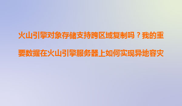 2025-11-16火山引擎對象存儲的跨區(qū)域復制與異地容災解決方案 在數據爆炸式增長的今天,企業(yè)數據的安全存儲與異地容災已成為業(yè)務連續(xù)性的關鍵保障。火山引擎作為字節(jié)跳動旗下的云服務平臺,憑借其強大的基礎設施和技術...