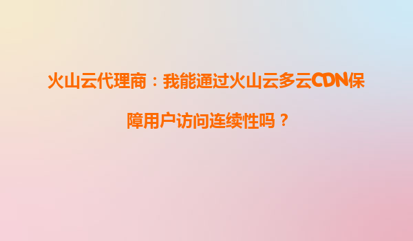 2025-09-27火山云代理商:我能通過(guò)火山云多云CDN保障用戶訪問(wèn)連續(xù)性嗎? 一、火山云多云CDN的核心價(jià)值 火山云多云CDN(內(nèi)容分發(fā)網(wǎng)絡(luò))是火山引擎基于全球分布式節(jié)點(diǎn)構(gòu)建的高性能加速服務(wù),其核心價(jià)值在于通...
