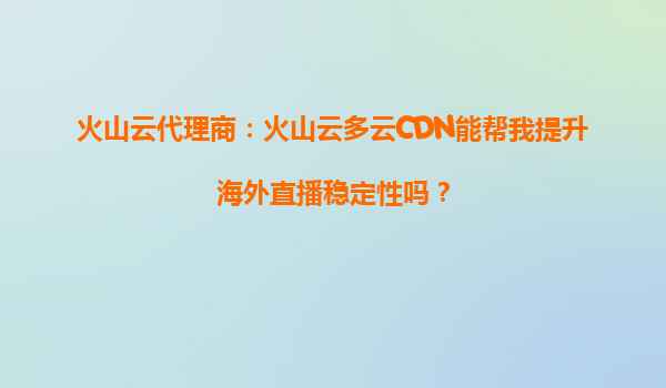 2025-09-28火山云代理商:火山云多云CDN如何提升海外直播穩(wěn)定性? 海外直播的挑戰(zhàn)與需求 隨著全球化的發(fā)展,海外直播已成為企業(yè)拓展國(guó)際市場(chǎng)的重要方式。然而,跨地域、跨...