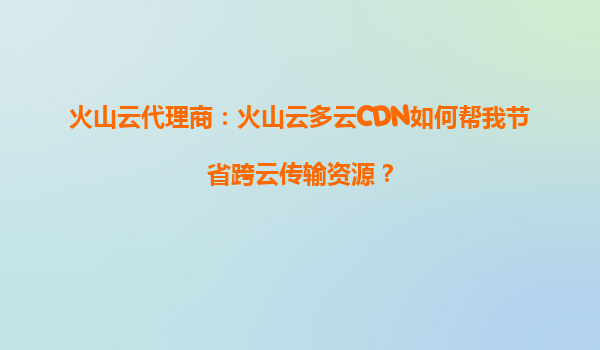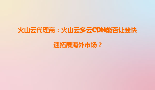 2025-09-26火山云代理商:火山云多云CDN能否讓我快速拓展海外市場? 一、火山云多云CDN的核心優(yōu)勢 火山引擎作為字節(jié)跳動旗下的云服務品牌,其多云CDN解決方案憑借全球化節(jié)點布局、高性能分發(fā)能力和智能化調度技...