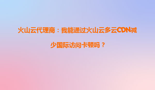 2025-09-26火山云代理商:我能通過火山云多云CDN減少國際訪問卡頓嗎? 一、國際訪問卡頓的核心原因 國際網(wǎng)絡訪問的卡頓問題通常由以下因素導致: 1.物理距離限制:數(shù)據(jù)需經(jīng)過多個國際網(wǎng)絡節(jié)點,延...