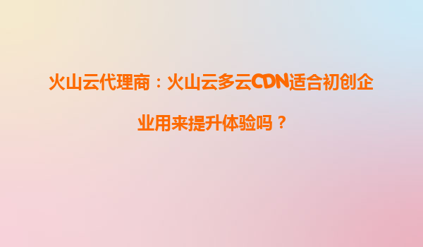 2025-09-26火山云代理商:火山云多云CDN適合初創(chuàng)企業(yè)用來提升體驗(yàn)嗎? 在當(dāng)今數(shù)字化時(shí)代,初創(chuàng)企業(yè)面臨著激烈的市場(chǎng)競(jìng)爭(zhēng),用戶體驗(yàn)成為決定成敗的關(guān)鍵因素之一。而內(nèi)容分發(fā)網(wǎng)絡(luò)(CDN)作為提升網(wǎng)站和應(yīng)用性能的重要工具,...