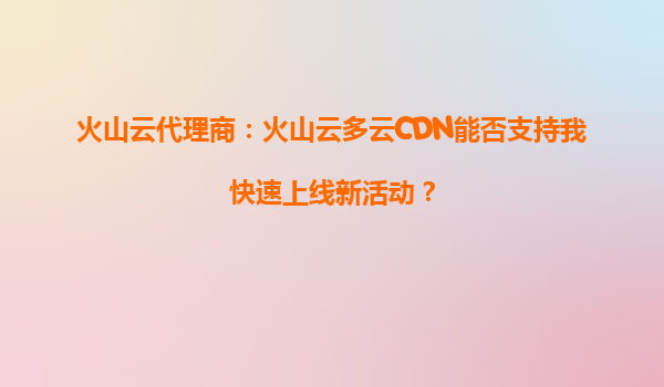4008-020-360 火山云代理商:火山云多云CDN如何助力企業(yè)快速上線新活動(dòng)? 一、快速上線的核心挑戰(zhàn) 在數(shù)字化營(yíng)銷時(shí)代,企業(yè)新活動(dòng)上線往往面臨突發(fā)流量壓力、全球訪問延遲、資...