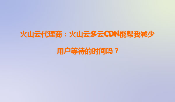 2025-09-25火山云代理商:火山云多云CDN如何幫助您減少用戶等待時(shí)間? 一、用戶等待時(shí)間的關(guān)鍵性 在當(dāng)今數(shù)字化時(shí)代,用戶體驗(yàn)已成為企業(yè)成功的關(guān)鍵因素之一。無論是電商平臺(tái)、在線教育、游戲還是視頻流媒體...