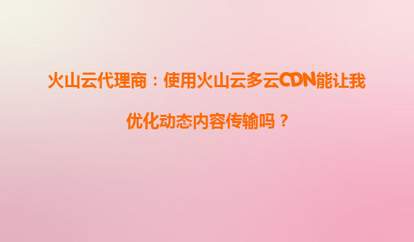 2025-09-26火山云代理商:使用火山云多云CDN能讓我優(yōu)化動(dòng)態(tài)內(nèi)容傳輸嗎? 一、火山云多云CDN的核心優(yōu)勢(shì) 火山云多云CDN是火山引擎基于全球化資源和技術(shù)能力推出的內(nèi)容分發(fā)網(wǎng)絡(luò)服務(wù),其核心優(yōu)勢(shì)在于通過智能調(diào)...