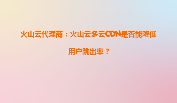 2025-09-26火山云代理商:火山云多云CDN如何有效降低用戶跳出率? 在當(dāng)今數(shù)字化時(shí)代,網(wǎng)站和應(yīng)用的加載速度直接影響用戶體驗(yàn)和商業(yè)轉(zhuǎn)化。用戶對(duì)頁(yè)面加載的耐心越來越低,據(jù)統(tǒng)計(jì),超過50%的用戶會(huì)在頁(yè)面加載時(shí)間超過3秒...