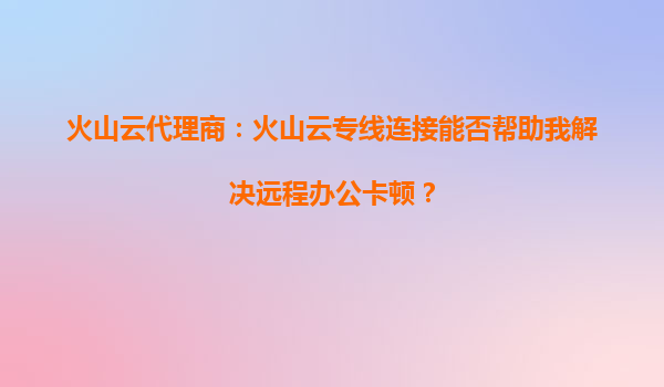 2025-09-24火山云代理商:火山云專線連接能否幫助我解決遠(yuǎn)程辦公卡頓? 在當(dāng)今數(shù)字化辦公環(huán)境中,遠(yuǎn)程辦公已成為許多企業(yè)的常態(tài)。然而,網(wǎng)絡(luò)延遲、數(shù)據(jù)傳輸不穩(wěn)定以及訪問企業(yè)內(nèi)部資源時(shí)的卡頓問題,常常成為影響工作效率的瓶...