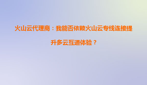2025-09-24火山云代理商視角:深度解析依賴火山云專線提升多云互通體驗(yàn) 一、多云場景下的核心挑戰(zhàn) 隨著企業(yè)數(shù)字化轉(zhuǎn)型的加速,多云架構(gòu)已成為主流選擇。AWS、Azure、阿里云等公有云與私有云混合部署時(shí),普遍面臨三個...