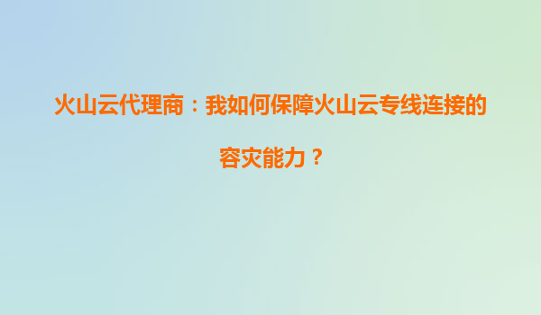 2025-09-22火山云代理商:我如何保障火山云專線連接的容災(zāi)能力? 一、理解火山云專線容災(zāi)的核心需求 在企業(yè)數(shù)字化轉(zhuǎn)型過程中,穩(wěn)定可靠的網(wǎng)絡(luò)連接是業(yè)務(wù)連續(xù)性的基石。火山云專線為企業(yè)提供高性能...