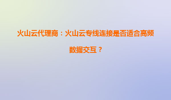 2025-09-22火山云代理商:火山云專線連接是否適合高頻數(shù)據(jù)交互? 引言 在當(dāng)前數(shù)字化時代,高頻數(shù)據(jù)交互已成為企業(yè)運(yùn)營的核心需求之一。無論是金融交易、實(shí)時數(shù)據(jù)分析,還...
