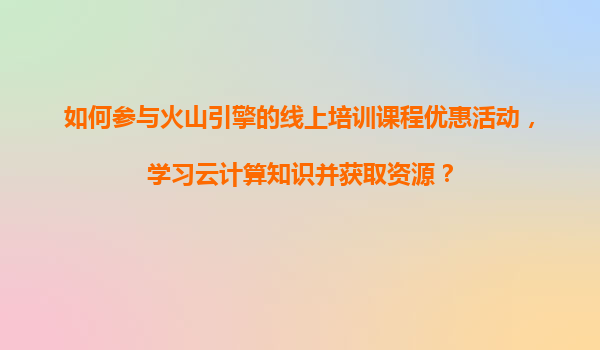 2025-11-06如何參與火山引擎線上培訓(xùn)課程優(yōu)惠活動(dòng),高效學(xué)習(xí)云計(jì)算知識(shí)? 一、火山引擎線上培訓(xùn)課程簡(jiǎn)介 火山引擎是字節(jié)跳動(dòng)旗下的云服務(wù)平臺(tái),為企業(yè)和開發(fā)者提供云計(jì)算、大數(shù)據(jù)、AI等技術(shù)支持。其線上培訓(xùn)課程體系...