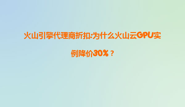 火山引擎代理商折扣:深度解析火山云GPU實例降價30%背后的戰(zhàn)略與優(yōu)勢