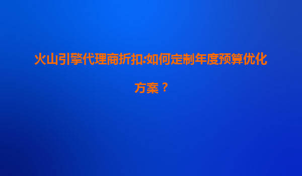 火山引擎代理商折扣:如何定制年度預(yù)算優(yōu)化方案?