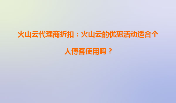 火山云代理商折扣:火山云的優(yōu)惠活動適合個人博客使用嗎?