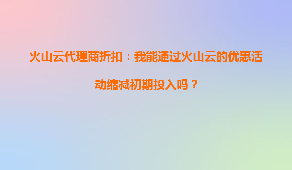 火山云代理商折扣:如何通過優(yōu)惠活動縮減初期投入?