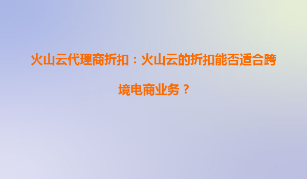 火山云代理商折扣:火山云的折扣能否適合跨境電商業(yè)務(wù)?