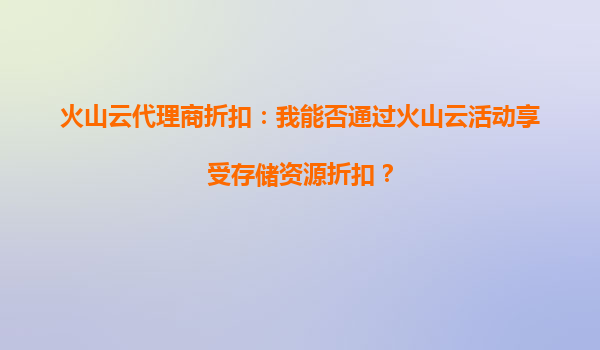 火山云代理商折扣:如何通過活動享受存儲資源優(yōu)惠?