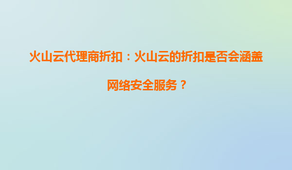 火山云代理商折扣:火山云的折扣是否會涵蓋網絡安全服務?