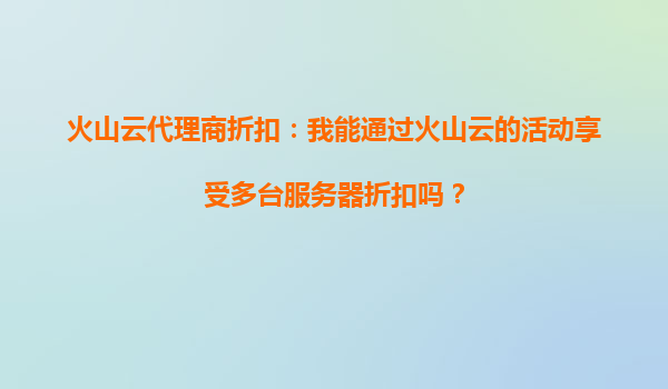 火山云代理商折扣:多臺(tái)服務(wù)器優(yōu)惠活動(dòng)詳解