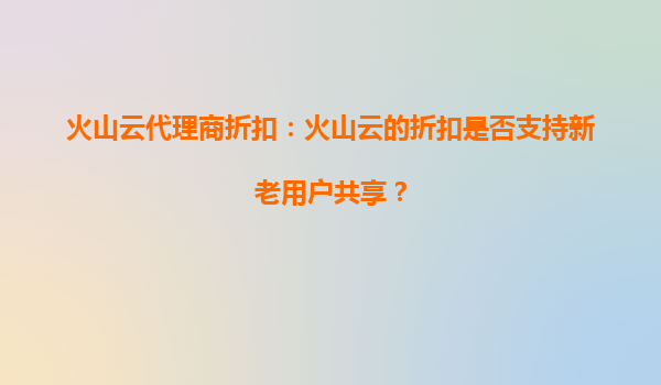 火山云代理商折扣:火山云的折扣是否支持新老用戶共享?