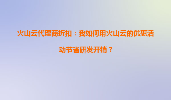 火山云代理商折扣:如何利用火山云優(yōu)惠活動(dòng)節(jié)省研發(fā)開銷