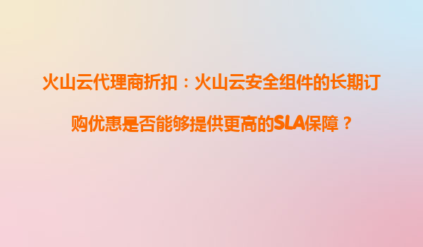 火山云代理商折扣:火山云安全組件的長期訂購優(yōu)惠能否提供更高SLA保障?