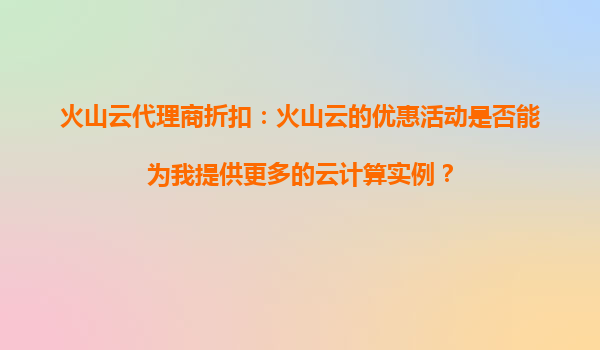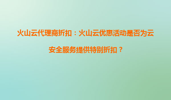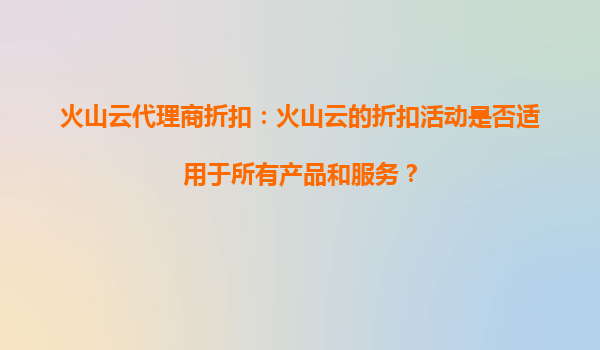 2025-09-16火山云代理商折扣:火山云的折扣活動(dòng)是否適用于所有產(chǎn)品和服務(wù)? 隨著云計(jì)算市場(chǎng)的競(jìng)爭(zhēng)日益激烈,各大云服務(wù)提供商紛紛通過(guò)折扣活動(dòng)吸引用戶。火山云作為行業(yè)內(nèi)的領(lǐng)先品牌之一,其代理商折扣活動(dòng)備受關(guān)注。然而,很...