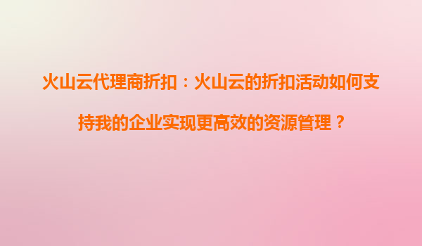 2025-09-16火山云代理商折扣:火山云的折扣活動(dòng)如何支持我的企業(yè)實(shí)現(xiàn)更高效的資源管理? 一、火山云的核心優(yōu)勢(shì)與資源管理價(jià)值 火山云作為字節(jié)跳動(dòng)旗下的云計(jì)算服務(wù)品牌,憑借其全球化基礎(chǔ)...