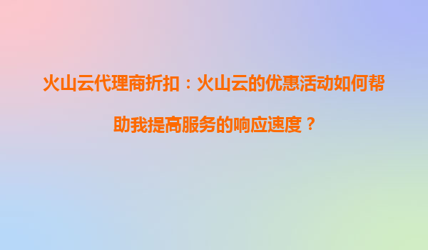 4008-020-360 火山云代理商折扣:如何利用優(yōu)惠活動(dòng)提升服務(wù)響應(yīng)速度 引言 在數(shù)字化時(shí)代,企業(yè)對(duì)云計(jì)算服務(wù)的需求日益增長(zhǎng),尤其是對(duì)高可用性和快速響應(yīng)的需求更為迫切。火山云作為領(lǐng)先的云計(jì)算服務(wù)提供商,憑借...