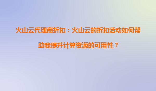 2025-09-16火山云代理商折扣:如何通過(guò)折扣活動(dòng)提升計(jì)算資源的可用性? 一、云計(jì)算資源可用性的核心挑戰(zhàn) 在數(shù)字化轉(zhuǎn)型的背景下,企業(yè)對(duì)云計(jì)算資源的需求呈現(xiàn)爆發(fā)式增長(zhǎng)。...