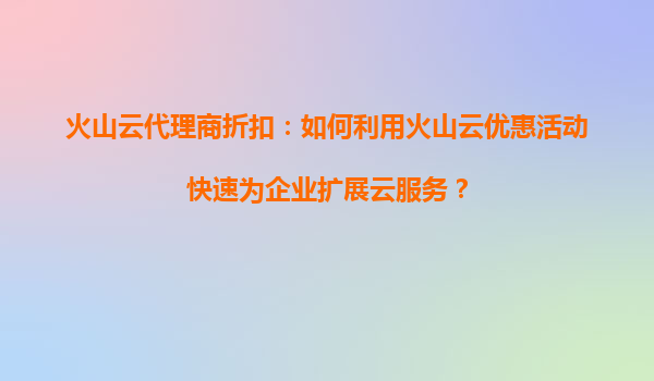 2025-09-16火山云代理商折扣:如何利用火山云優(yōu)惠活動(dòng)快速為企業(yè)擴(kuò)展云服務(wù)? 一、火山云的核心優(yōu)勢(shì)解析 火山云作為字節(jié)跳動(dòng)旗下的云計(jì)算品牌,憑借其強(qiáng)大的技術(shù)能力和生態(tài)資源,提供了多項(xiàng)差異化優(yōu)勢(shì): ...