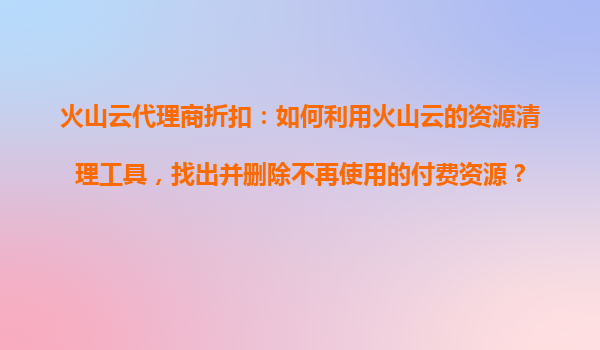 2025-10-31如何利用火山云的資源清理工具優(yōu)化成本?——代理商折扣與資源管理全攻略 一、火山云資源清理的核心價(jià)值 隨著企業(yè)上云進(jìn)程加速,未及時(shí)清理的閑置資源可能導(dǎo)致3...