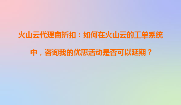 2025-10-31如何在火山云的工單系統(tǒng)中咨詢優(yōu)惠活動延期?全面指南與代理商優(yōu)勢解析 引言 火山云作為領(lǐng)先的云服務(wù)提供商,其靈活的優(yōu)惠政策和高性能的服務(wù)備受企業(yè)青睞。作為代理商或直接用戶,您可能...