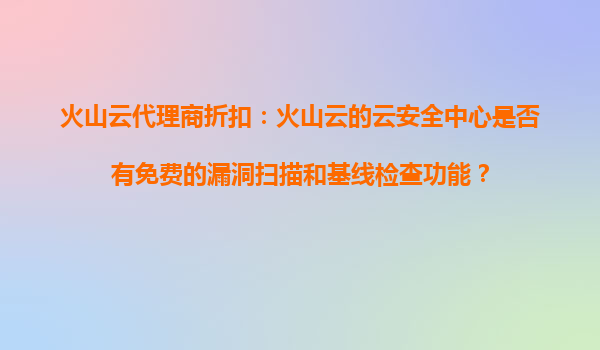 2025-10-31火山云代理商折扣:火山云的云安全中心免費(fèi)功能與代理商優(yōu)勢解析 火山云云安全中心的核心功能 火山云作為國內(nèi)領(lǐng)先的云計(jì)算服務(wù)商,其云安全中心(CloudSecurityCenter)為企業(yè)提供...