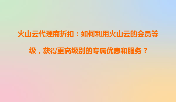 2025-10-31火山云代理商折扣:如何利用火山云的會員等級,獲得更高級別的專屬優(yōu)惠和服務(wù)? 1.火山云會員等級體系介紹 火山云作為一家領(lǐng)先的云計(jì)算服務(wù)提供商,為代理商和客戶提供了完善的會員等級體系。該...