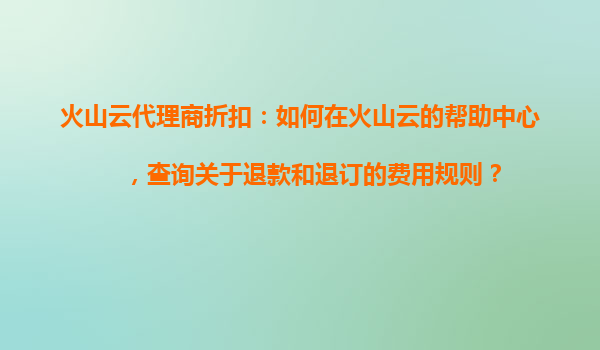 2025-10-31火山云代理商折扣:如何在火山云的幫助中心查詢退款和退訂費(fèi)用規(guī)則 一、火山云的核心優(yōu)勢 火山云作為國內(nèi)領(lǐng)先的云計(jì)算服務(wù)提供商,依托字節(jié)跳動的技術(shù)積累,為用戶提供穩(wěn)定、安全、高效的云服務(wù)解...