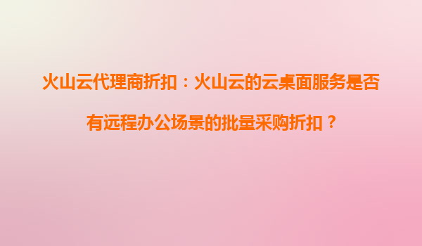 2025-10-30火山云代理商折扣:火山云云桌面服務(wù)的遠(yuǎn)程辦公批量采購(gòu)方案解析 一、遠(yuǎn)程辦公場(chǎng)景下的云桌面需求背景 隨著企業(yè)數(shù)字化轉(zhuǎn)型加速,遠(yuǎn)程辦公逐漸成為常態(tài)化需求。云桌面(VDI)作為核心工具,能夠?qū)崿F(xiàn)數(shù)據(jù)集...