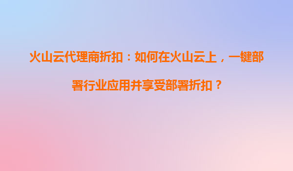 2025-10-30火山云代理商折扣:如何在火山云上,一鍵部署行業(yè)應(yīng)用并享受部署折扣? 一、火山云的核心優(yōu)勢(shì) 火山云作為字節(jié)跳動(dòng)旗下的云計(jì)算服務(wù)平臺(tái),具備高性能、高可靠性和全球化的基礎(chǔ)設(shè)施布局。其主要優(yōu)勢(shì)包括...