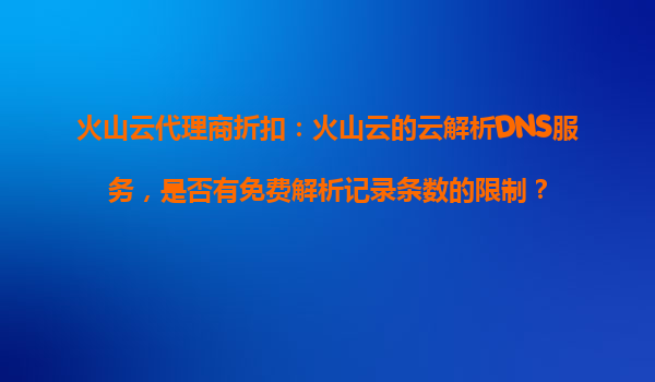 2025-10-30火山云代理商折扣:解析火山云DNS服務(wù)的優(yōu)勢(shì)與免費(fèi)限制 一、火山云DNS服務(wù)免費(fèi)解析記錄條數(shù)限制 火山云作為國(guó)內(nèi)領(lǐng)先的云計(jì)算服務(wù)提供商,其云解析DNS服務(wù)是許多企業(yè)和開...