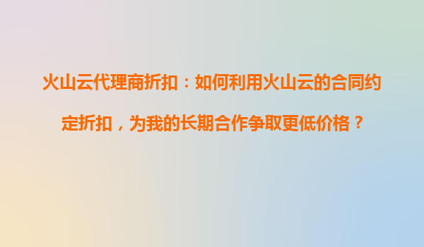 2025-10-30如何利用火山云的合同約定折扣,為長(zhǎng)期合作爭(zhēng)取更低價(jià)格? 火山云的核心優(yōu)勢(shì) 在探討如何通過合同談判獲得更低價(jià)格前,首先要清楚火山云的核心競(jìng)爭(zhēng)力,這將是你談判的重要籌碼: ...