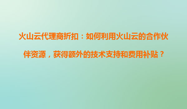 2025-10-30火山云代理商折扣:如何利用火山云的合作伙伴資源,獲得額外的技術(shù)支持和費(fèi)用補(bǔ)貼? 一、火山云代理商的價(jià)值定位 作為云計(jì)算服務(wù)的重要渠道,火山云代理商不僅肩負(fù)著市場(chǎng)拓展的責(zé)任,更是連...