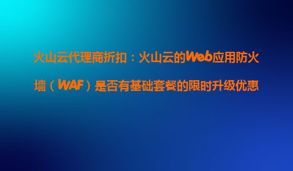 2025-10-30火山云Web應(yīng)用防火墻(WAF)限時(shí)升級(jí)優(yōu)惠活動(dòng)解析 限時(shí)優(yōu)惠活動(dòng)詳情 火山云近期針對(duì)Web應(yīng)用防火墻(WAF)基礎(chǔ)套餐用戶推出限時(shí)升級(jí)優(yōu)惠活動(dòng)。在活動(dòng)期間,新老用戶均可通過火山云代理商享受基...