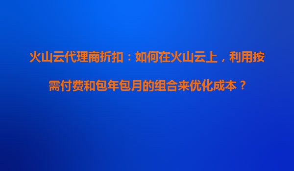 2025-10-30火山云代理商折扣:如何在火山云上,利用按需付費(fèi)和包年包月的組合來優(yōu)化成本? 引言 在當(dāng)前快速發(fā)展的云計(jì)算市場(chǎng)中,企業(yè)需要靈活且高效的資源管理方式。火山云作為國(guó)內(nèi)領(lǐng)先的云服務(wù)提供商,通過...