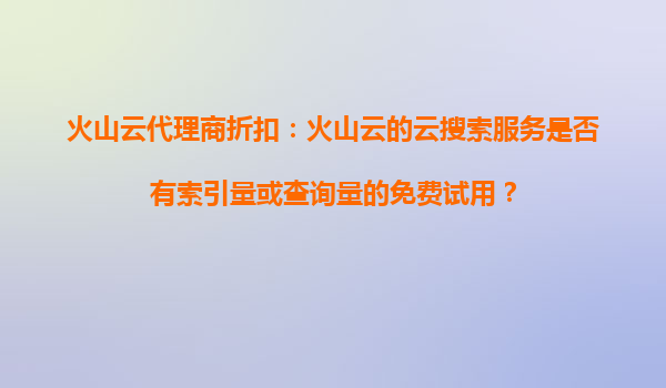 2025-10-30火山云代理商折扣:火山云的云搜索服務(wù)是否有索引量或查詢量的免費(fèi)試用? 火山云代理商折扣政策解析 火山云作為國(guó)內(nèi)領(lǐng)先的云計(jì)算服務(wù)商,提供全面的云搜索解決方案。針對(duì)代理商,火山云...