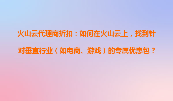 2025-10-29火山云代理商折扣:如何在火山云上找到針對(duì)垂直行業(yè)(如電商、游戲)的專(zhuān)屬優(yōu)惠包? 一、火山云的核心優(yōu)勢(shì)與行業(yè)適配性 火山云作為字節(jié)跳動(dòng)旗下的云計(jì)算服務(wù)品牌,憑借其底層技術(shù)架構(gòu)和全球化資源...