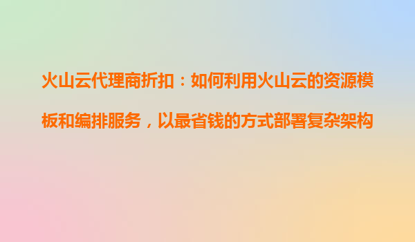 2025-10-29火山云代理商折扣:如何利用火山云的資源模板和編排服務(wù),以最省錢(qián)的方式部署復(fù)雜架構(gòu)? 1.火山云的核心優(yōu)勢(shì)與代理商折扣價(jià)值 火山云作為企業(yè)級(jí)云計(jì)算平臺(tái),提供高性能計(jì)算、彈性擴(kuò)展和全球...