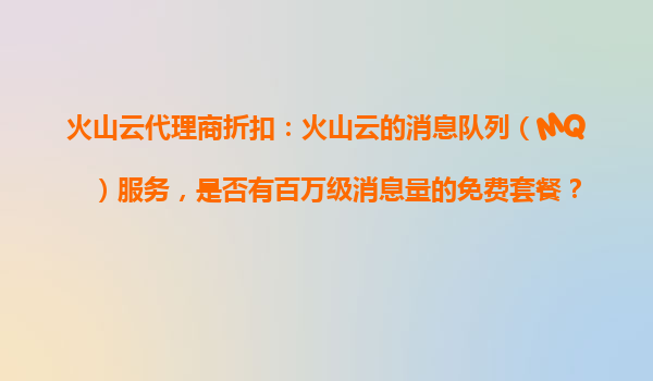 2025-10-29火山云消息隊(duì)列(MQ)服務(wù)免費(fèi)套餐解析及代理商優(yōu)勢(shì)詳解 一、火山云MQ服務(wù)免費(fèi)套餐詳情 截至目前,火山云消息隊(duì)列(MQ)服務(wù)確實(shí)為開(kāi)發(fā)者提供了免費(fèi)套餐選項(xiàng),但需要特別注意: 免費(fèi)額度...