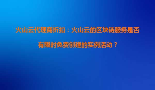 2025-10-29火山云代理商折扣:限時(shí)免費(fèi)區(qū)塊鏈服務(wù)實(shí)例活動(dòng)解析 一、火山云區(qū)塊鏈服務(wù)的核心優(yōu)勢(shì) 火山云作為字節(jié)跳動(dòng)旗下的云計(jì)算品牌,其區(qū)塊鏈服務(wù)憑借以下差異化優(yōu)勢(shì)在行業(yè)中脫穎而出: 高性...